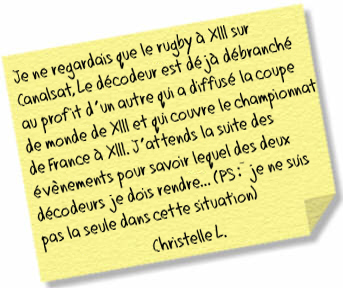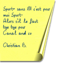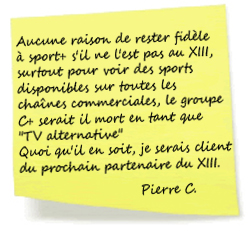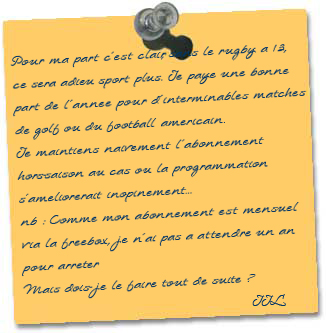 En nouvelle Calédonie pour pouvoir regarder Sport Plus (et ça tout le monde en métropole l' ignore) il faut d' abord s' abonner à Canal Sat (soit 1100 Euro par an) et payer un supplément de 240 Euro par an, et bien voila, je vais faire 240 Euro économie car étant donné qu' a la télévision je ne regardais que le XIII je vais vous abandonner.