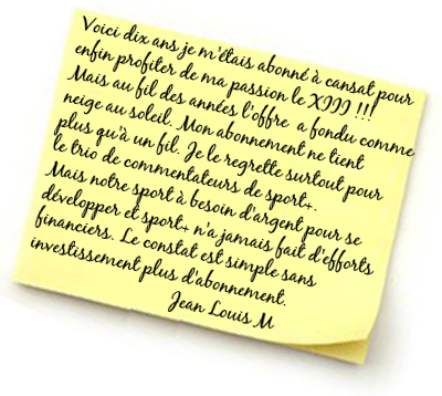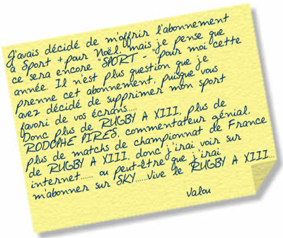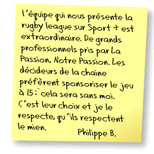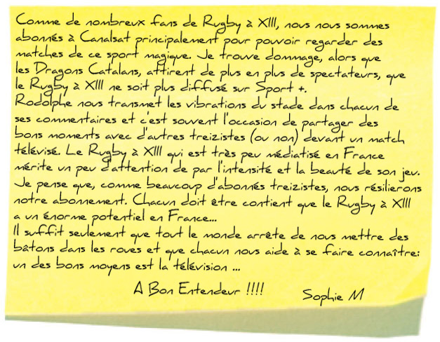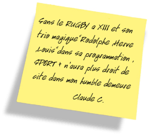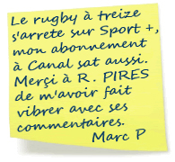 Je vous aimais beaucoup, vous m' avez apporté beaucoup de joie et de bonheur ,quel plaisir c' était pour moi de me lever à 4 h le dimanche matin pour voir en direct du Rugby à XIII.