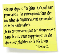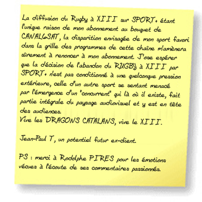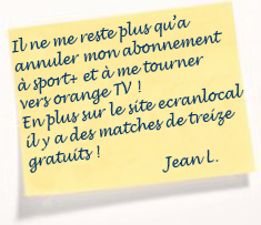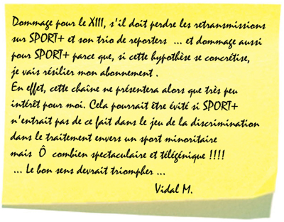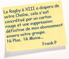 SEUL qui pouvait permettre à des amoureux de ce sport de VOIR du Rugby à XIII.Cela est triste et fait très mal.
